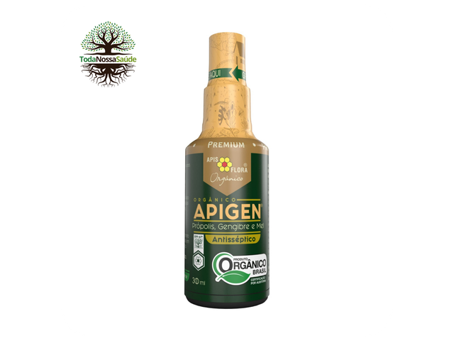 O Apigen® Orgânico é um spray antisséptico bucal, composto por mel polifloral, extrato de própolis EPP-AF® e extrato de gengibre. Aplicar três a quatro vezes na boca, quando necessário.