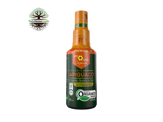 O Apiguaco® Orgânico é um spray antisséptico bucal à base de extrato de própolis, mel polifloral e extrato de guaco. Aplicar três a quatro vezes na boca, quando necessário.